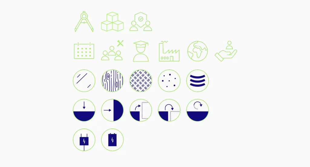 Icons eignen sich für Produktmerkmale, technische Funktionen, Vorteile, Prozesse oder Kategorien – überall dort, wo Informationen schnell erfasst werden sollen.
